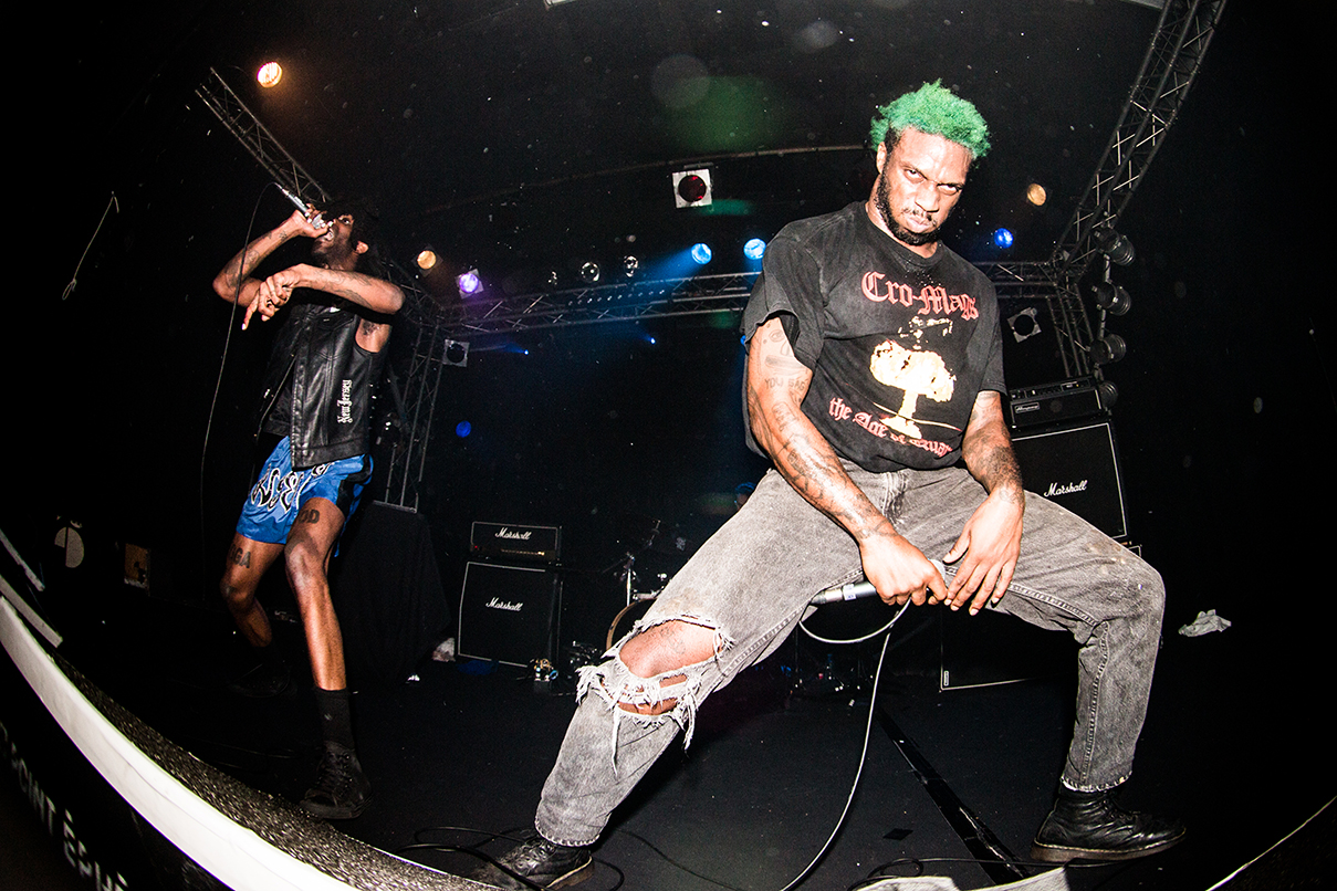 Si on émettait quelques doutes quant au bien-fondé du buzz autour de Ho99o9 (gros engouement un peu partout, sauf en France, évidemment) après l’écoute de leur dernier EP, efficace mais bien trop court pour se faire un avis définitif, le concert du désormais trio au Point Éphémère à Paris en novembre dernier les a tous balayés (tout comme l’excellente mixtape Dead Bodies in the Lake postée sur la page Soundcloud du groupe). L’énergie démentielle dégagée par les deux MC afro-américains, The OGM et Eaddy, a contaminé le public en quelques secondes, sans espoir de guérison avant la fin d’un show intense de bout en bout durant lequel Ho99o9 a alterné hardcore-punk old school façon early Bad Brains et morceaux hip-hop électroniques, dark et abrasif à la Death Grips. Quand il ne mélangeait pas les deux.