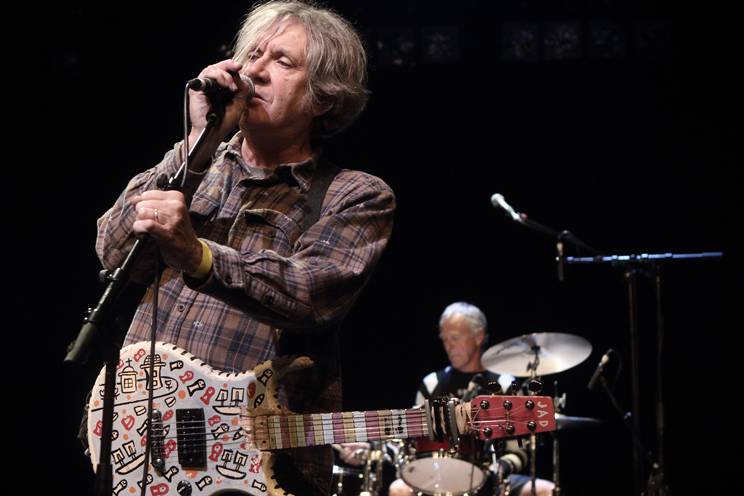 Pas de quoi effrayer cependant le débonnaire Jad Fair qui prenait le relais sur scène en suivant avec ses vieux limiers de l’expérimental/indie rock de Half Japanese. Chemise à carreaux et cheveux mi-longs grisonnants, Fair a encore lui aussi tous les attributs de l’adolescent. Sa guitare-jouet en bandoulière, ou ses vannes répétées à l’égard de son malheureux bassiste souffre-douleur Jason Willett, en témoignent également. Heureusement à ses côtés, les musiciens sont là pour donner la contenance nécessaire à ce troubadour toujours aussi disert, notamment le guitariste John Sluggett, impeccable sur les titres les plus noisy (« He Walks Among Us », « True Believers ») avec ses solos très free. Même sur les titres plus pop et légers (« Red Dress », « Postcard from Far Away »), Half Japanese ne perd rien de sa superbe, ce qui suffit à combler l’assistance.