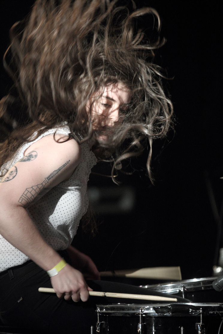 Un degré de précision qui n’était pas particulièrement la règle de mise pour la cohorte de girls band se succédant sur le plateau le samedi soir, qu’il s’agisse des Canadiennes de Moss Lime, plus proches des Shaggs que des Raincoats (mais aussi de Sebadoh, dans leur manière de changer sans arrêt d’instruments entre elles), ou des Niçoises de Thee Dead Clodettes, bien trop approximatives elles aussi pour être pleinement convaincantes – mais il paraît que c’est un genre me dit-on. Heureusement, le changement d’allure apporté par les demoiselles de Memphis des Nots a été des plus bénéfiques ce soir-là. Petites protégées de Ty Segall et jeunes égéries du label Goner, ces presque gamines ont largement de quoi damer le pion à leur mentor. Car voilà un punk vicieux nourri à l’adrénaline électrique de leur guitariste/chanteuse Natalie Hoffmann, remuant et vociférant comme une poupée mécanique, et aux incartades soniques des synthétiseurs d’Alexandra Eastburn, aussi vrombissants que ceux d’Ann Shenton en leur temps dans Add N To (X). Cette musique est d’une efficacité et d’une immédiateté confondantes, comme en attestent les brûlots inflexibles aux titres courts que sont « White Noise », « Reactor » ou « Decadence ». Les seules véritables riot grrrls du jour étaient bien ces benjamines du festival. Une petite révélation.