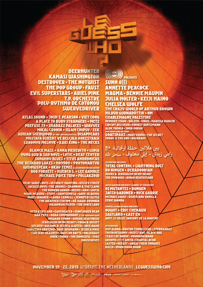 Le Guess Who? Festival se tiendra cette année du 19 au 22 novembre à Utrecht (Pays Bas). La prog est désormais complète The Notwist, Sunn O))) presents Hildur Gudnadottir, Islam Chipsy, Bob Forrest, Prefuse 73, Huerco S., Lee Gamble, Hooton Tennis Club, Hop Along, Bully, Mark McGuire… s’ajoutent à une programmation déjà impressionnante.