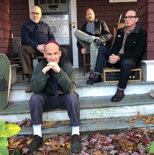 … pour une photo. Ian McKaye, Lyle Preslar, Brian Baker et Jeff Nelson se sont amusés à prendre la même que celle illustrant leur EP Salad Days de 1985.