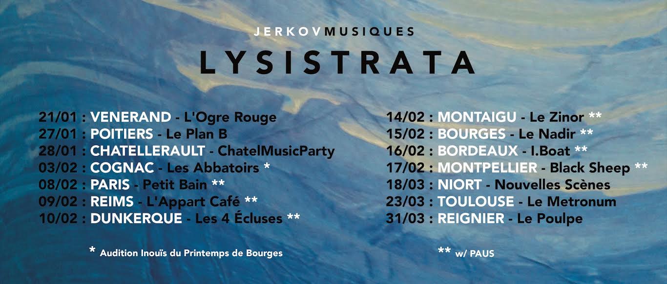 Lysistrata, trio de Saintes formé en 2013 et influencé par Mogwai, Dub Trio, Fugazi ou Explosion In The Sky (c’est leur bio qui le dit), entre autres, sortira son premier EP en avril chez Jerkov Musiques.