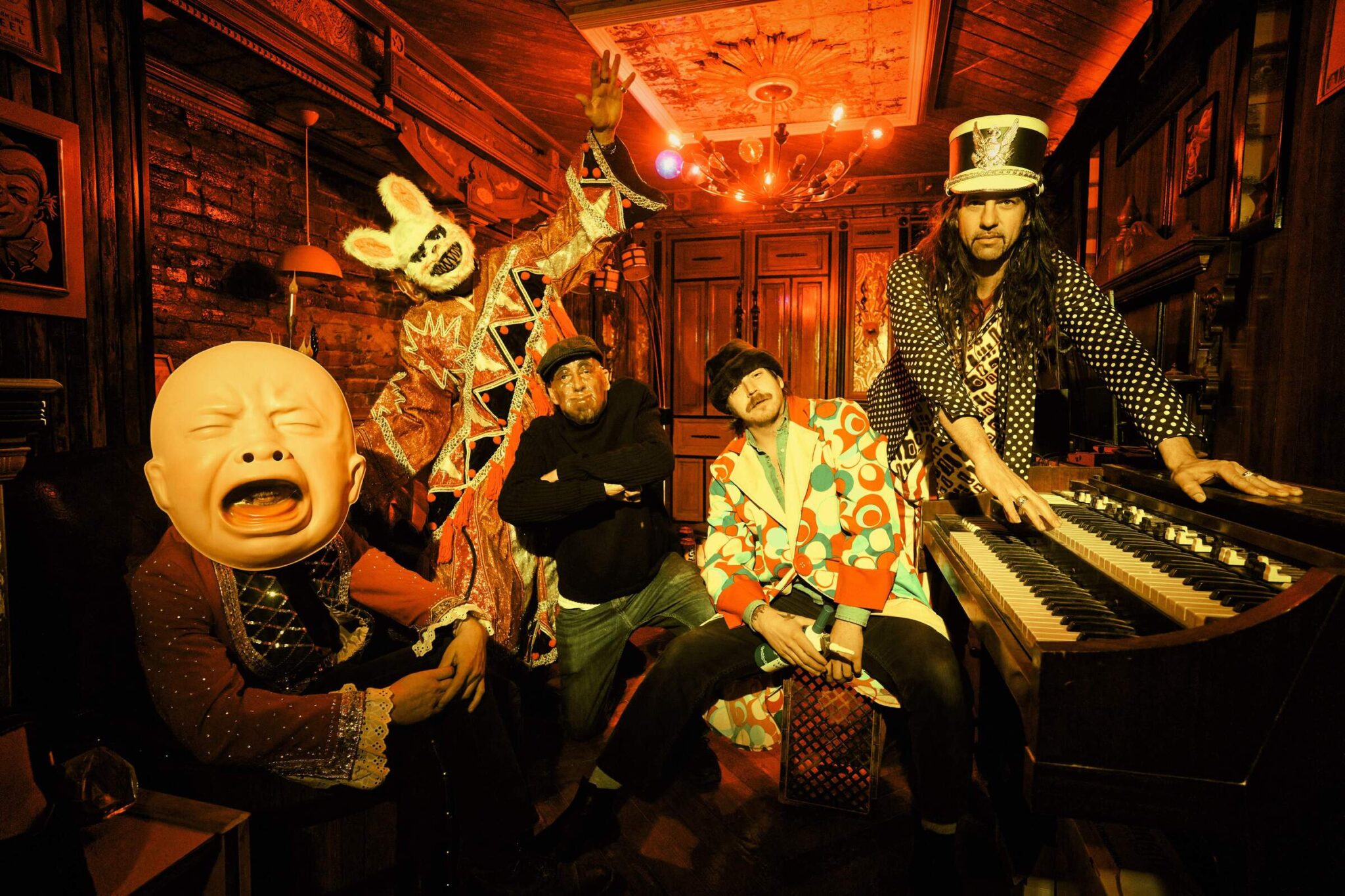 « Tel un phénix fou renaissant de ses cendres, PLQ MRX reprend le flambeau là où Plaque Marks s’est arrêté. S’il comprend un ou deux membres du gang originel, les identités des autres ne peuvent qu’être devinées, mais les rumeurs font état de musiciens ayant joué dans des groupes tels que Swans, Unsane, Foetus (Vincent Signorelli, donc), Author & Punisher et Ecstatic Vision (Doug Sabolick, donc). Au sein de la scène noise rock actuelle, marquée par le succès de Chat Pile et de festivals tels que Caterwaul, PLQ MRX propose un spectacle qui pousse le genre vers plus de théâtralité et de psychédélisme. « Le noise rock était la base quand nous avons commencé », déclare le chanteur Alrightus, « mais je me sens désormais plus proche du funk des 70s et de certains obscurs groupes rock européen que de n’importe quelle autre musique. Funkadelic est universel ! Si vous ne pouvez pas comprendre ça, vous ne méritez pas de vivre ! » (Rires) »