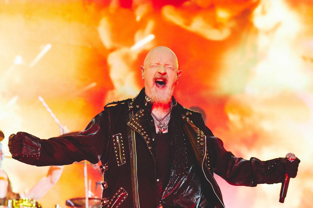 Heureusement, histoire de ne pas oublier que le Hellfest est aussi (encore ?) une célébration du heavy metal canal historique, quelques légendes cloutées bénéficient toujours d’un accessit privilégié aux méga-concerts du début de soirée sur des Main Stage désormais trustées par les générations suivantes, plus hydrides (Deftones, Avenged Sevenfold, Limp Bizkit et consorts). Porte-étendard emblématique du genre, Judas Priest confirme dans le sillage de son nouveau Firepower sa valeur inaltérable en la matière. Certes, Rob Halford n’a plus sa prestance gesticulatoire, le poids des ans a alourdi sa silhouette et son arrivée en moto sur le culte « Hell Bent for Leather » est moins ronflante qu’auparavant. Mais sa voix criarde reste toujours aussi épique sur les charges plombées que le groupe assène avec une maîtrise perpétuée avec brio par la nouvelle génération de guitaristes (Richie Faulkner et Andy Sneap, qui remplace désormais Glenn Tipton, atteint d’Alzheimer, lors des tournées). « Sinner », « Freewheel Burning », l’hymne « Metal Gods » s’enchaînent tambour battant dans un concert célébrant toute l’histoire du groupe en mode flashback, avec projection des pochettes en arrière-plan sur l’écran géant à l’appui. Et lorsque le batteur Scott Travis demande au public le prochain titre qu’il veut entendre, l’apparition du cavalier mécanique de « Painkiller » s’accompagne d’une ovation qui traduit le soutien dont le groupe continue de bénéficier, même s’il est curieux de voir les guitaristes actuels s’escrimer en live sur le morceau tandis que les images des figures tutélaires KK Downing et Glenn Tipton inondent l’écran en mode ghosts. (L.C.)