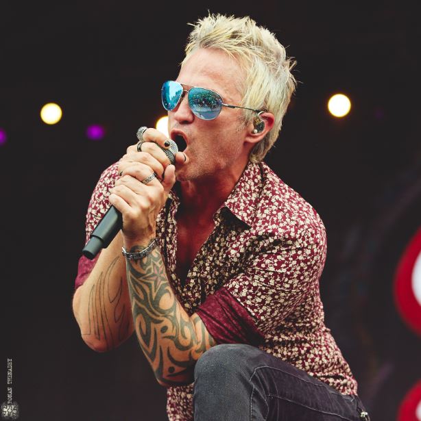 Peu de monde devant la scène – par rapport à la plupart des groupes se produisant sur les Mainstages – lorsque retentit l’intro du concert de Stone Temple Pilots. Le quatuor n’a jamais été aussi populaire ici qu’aux États-Unis, et c’est son premier concert français avec Jeff Gutt au chant, remplaçant de Scott Weilland et Chester Bennington, tous deux décédés – Gutt doit maudire l’expression « jamais deux sans trois ». Alors qu’on n’aurait pas misé un centime sur ce chanteur issu d’un groupe neo-metal de ixième zone (Dry Cell) et candidat de l’émission X-Factor, Gutt a su convaincre sur l’album sans titre sorti l’an dernier, et c’est aussi ce qu’il parvient à faire en cette fin d’après-midi au Hellfest. On peut trouver dérangeant qu’il singe tant Scott Weilland, vocalement comme gestuellement, mais malgré cette mise en retrait de sa propre personnalité, le charisme du bonhomme reste bien réel et son envie de convaincre le public fait plaisir à voir et à entendre, notamment sur « Roll Me Under » – seul titre du nouvel album joué, et seul à ne pas être extrait de Core ou Purple – où il descend de scène pour aller au contact des premiers rangs. Son interprétation sans faille et passionnée de « Vasoline », « Wicked Garden », « Big Empty », « Big Bang Baby » ou « Sex Type Thing » remporte totalement notre adhésion, d’autant que les frères DeLeo, Dan à la guitare (bien décrépi par l’âge) et Robert à la basse (à qui vieillir réussit au contraire bien : bonne idée la barbe !) et le batteur Eric Kretz assurent évidemment comme des chefs. (O.D.)