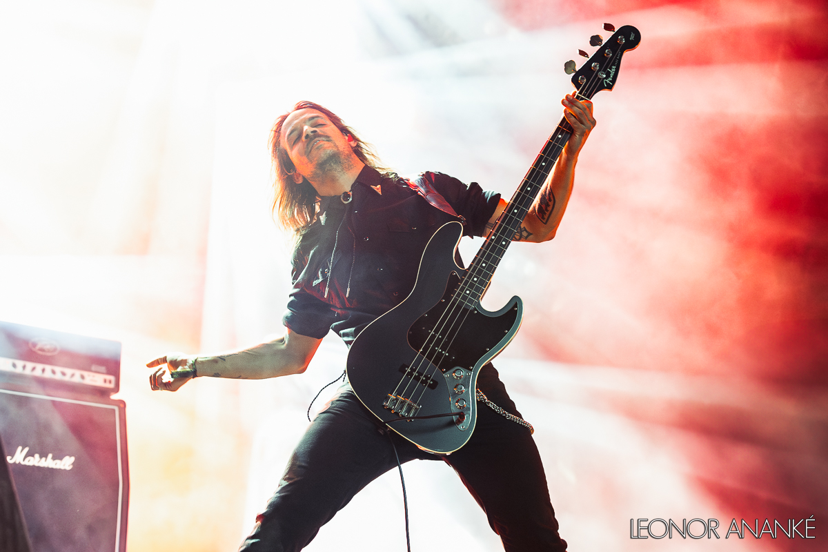 À l’heure du coup de barre post-prandial, on retrouve sur la Mainstage Black Stone Cherry, qui dispense avec bonhomie son hard rock du Kentucky biberonné au bourbon et au bluegrass. On nous avait promis des « riffs à l’embonpoint fièrement assumé » (dixit le Hellfest). En effet, le set est aussi généreux qu’un barbecue du Midwest. Le batteur John Fred Young, coutumier du fait, se lance dans de longs et copieux solos que le public écoute religieusement. Chris Robertson, l’imposant chanteur, tattoo d’Hendrix sur le bras, tricote lui aussi sur son manche. Ambiance bon enfant. Puis l’irrésistible tube « Blame It On The Boom Boom » met tout le monde d’accord… Au même moment, The Casualties, groupe de street punk oï new-yorkais des années 90, met le feu à la Warzone. Trente-cinq ans plus tard, les crêtes colorées (et même les doubles crêtes) sont encore hautes. Un drapeau anarchie flotte devant la scène. « Chaos Sound », « Punk Rock Love », « Riot »… C’est à l’ancienne, criard, parfois approximatif, mais ça défoule. « Total fucking chaos! »
