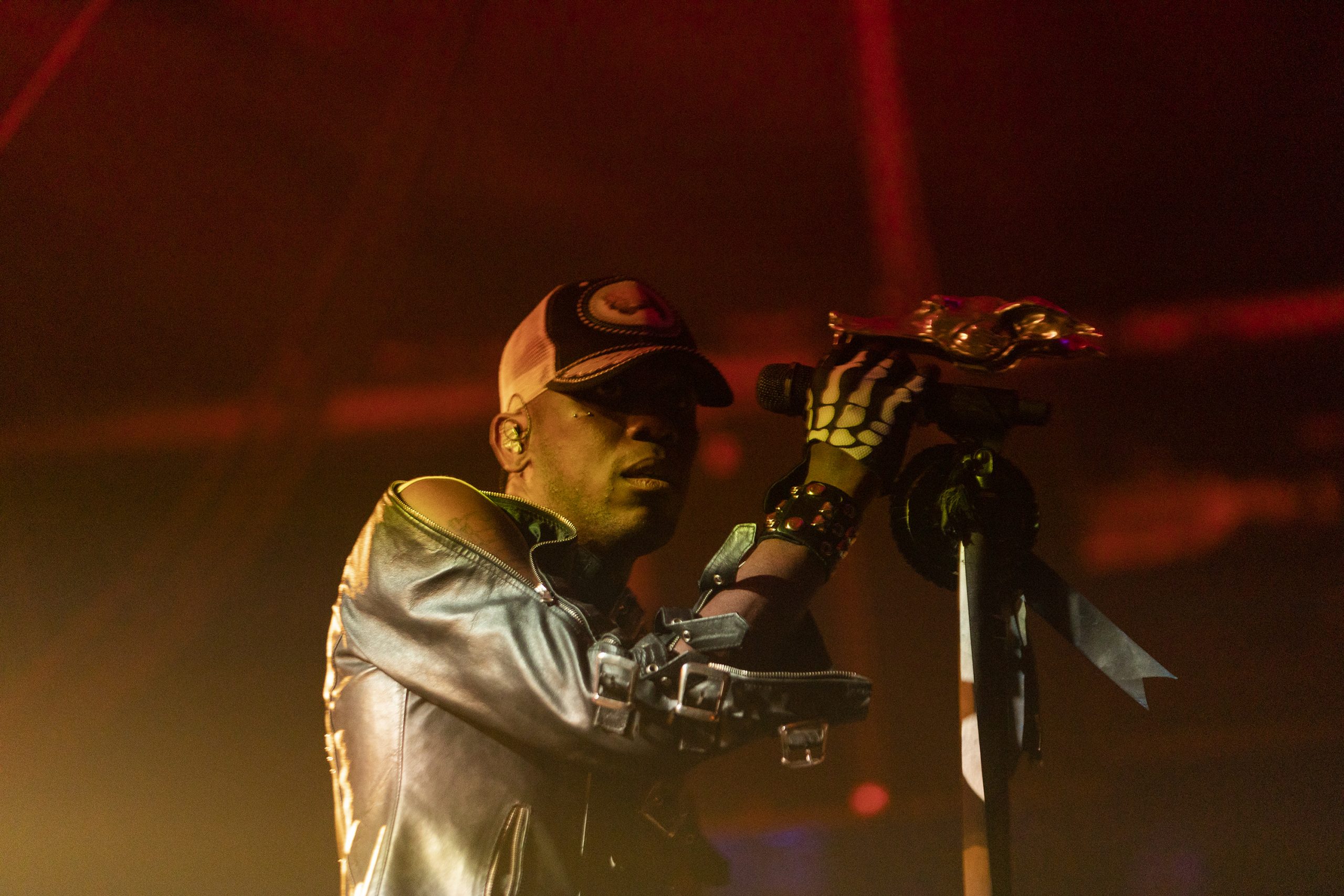 Pour du glam résolument contemporain, voire même carrément avant-gardiste, direction la scène Cupra pour le concert haut en couleur de l’Américain Yves Tumor. Celui qui aurait pu prendre le nom de Bowie (puisque c’est le sien) déploie sur scène tout son personnage fantasque et déluré. Prenant un peu le même chemin, ses morceaux electro-soul-rock souvent hyper-produits sur disque (la patte d’Alan Moulder au mixage du dernier album) se bonifie d’une patine plus électrique. Le guitariste Chris Greatti enjolive bien les choses avec sa tenue et son jeu très metal 70’s. Et Tumor enfonce le clou de ses multiples frasques, descendant dans la fosse pour mieux se dresser au-dessus de la masse ou tordant le cou de Griatti pendant son solo à la manière d’un Ozzy ceinturant Randy Rhoads. À un degré qualitatif moindre, le set de ses compatriotes de The Voidz dessine un certain parallèle dans cette petite sublimation live. Julian Casabancas joue un peu trop au crooner pop, ce que peut laisser entendre un titre guimauve comme « Leave It My Dream », mais les guitares électriques bien tranchantes et la coloration synth-wave viciée de « Prophecy of the Dragon » démontrent un réel savoir-faire dans les arrangements.