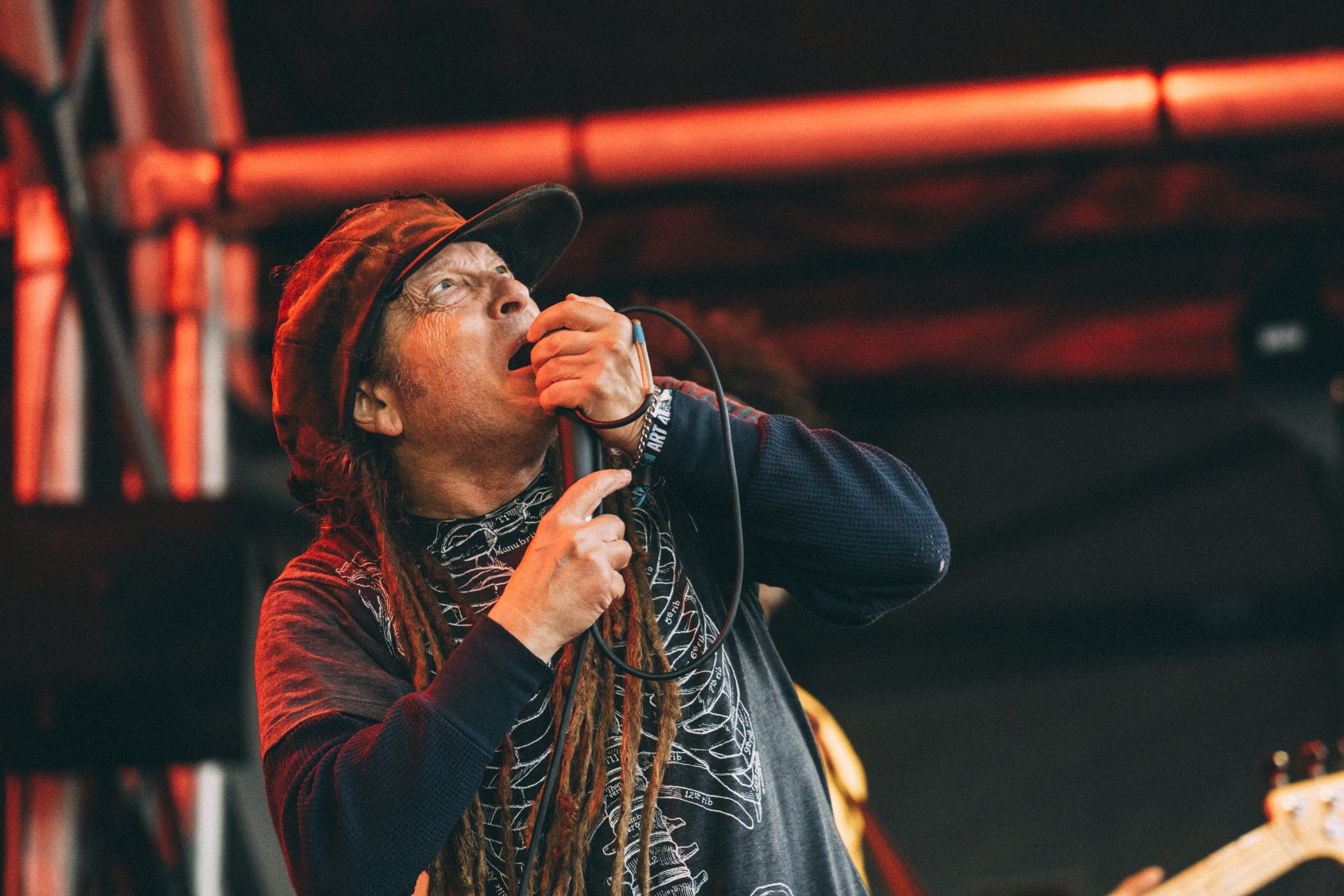 Dans la deuxième catégorie, on a, en jetant un œil sur le concert – mièvre – de Ghost, le même sentiment qu’avec Turnstile. Finalement, ces groupes sont bien davantage à leur place dans des festivals généralistes comme celui-ci, plutôt que dans des festivals metal par exemple, où leur quête de succès marketing trouve tout son sens. Tobias Forge a peut-être perdu sa coiffe d’anti-pape, mais rayon business, il a toujours la tête sur les épaules. Ayant manqué Amenra, c’est sans doute le concert hautement percutant de Liturgy qui remporte le pompon metallique. Avec son black metal rutilant, où se greffent scories sludge et mécaniques répétitives d’inspiration classique, le groupe de la guitariste/vocaliste transgenre Haela Ravenna Hunt-Hendrix condense une rage allant crescendo. Au milieu de « Before I Knew the Truth », la guitare de cette dernière se braque et l’oblige à quitter la scène quelques minutes sans que ses musicien(ne)s décrochent d’une mesure. Telle une louve affamée, elle refait alors son apparition les crocs rivés sur son micro et les griffes frappant le manche. Redrum.