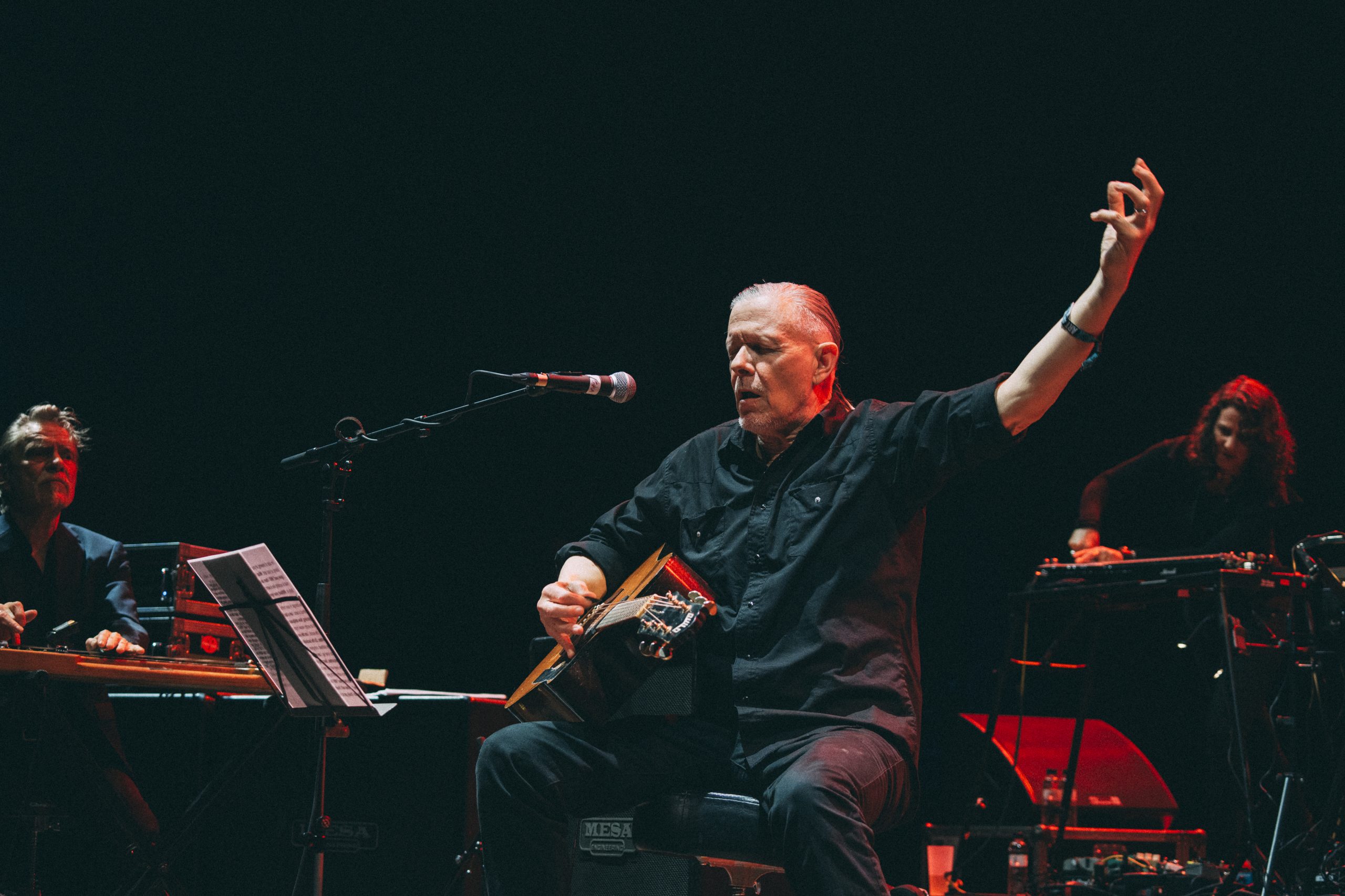 En matière d’étoile perchée dans son monde, les planches de l’auditorium ont également la chance d’accueillir Michael Gira et ses Swans pour sans doute la performance la plus maîtrisée – au doigt et à l’œil du maître – du festival. Dirigeant son ensemble comme un conductor, tout en étant assis au milieu et en lui tournant le dos, Gira transcende littéralement les possibilités soniques de sa formation vers toujours plus de dissonance. Un bateau ivre mais robuste, que Gira barre au milieu de trois pièces parmi les plus obsessionnelles du dernier album (« The Beggar », « Ebbing », « The Memorious »), et auxquels s’adjoignent deux quasi-inédits live (« The Hanging Man », tiré de Leaving Meaning, et « Birthing Cloud of Unknowing »). Cinq pièces seulement pour 75 minutes de concert, mais une tension à SON comble.