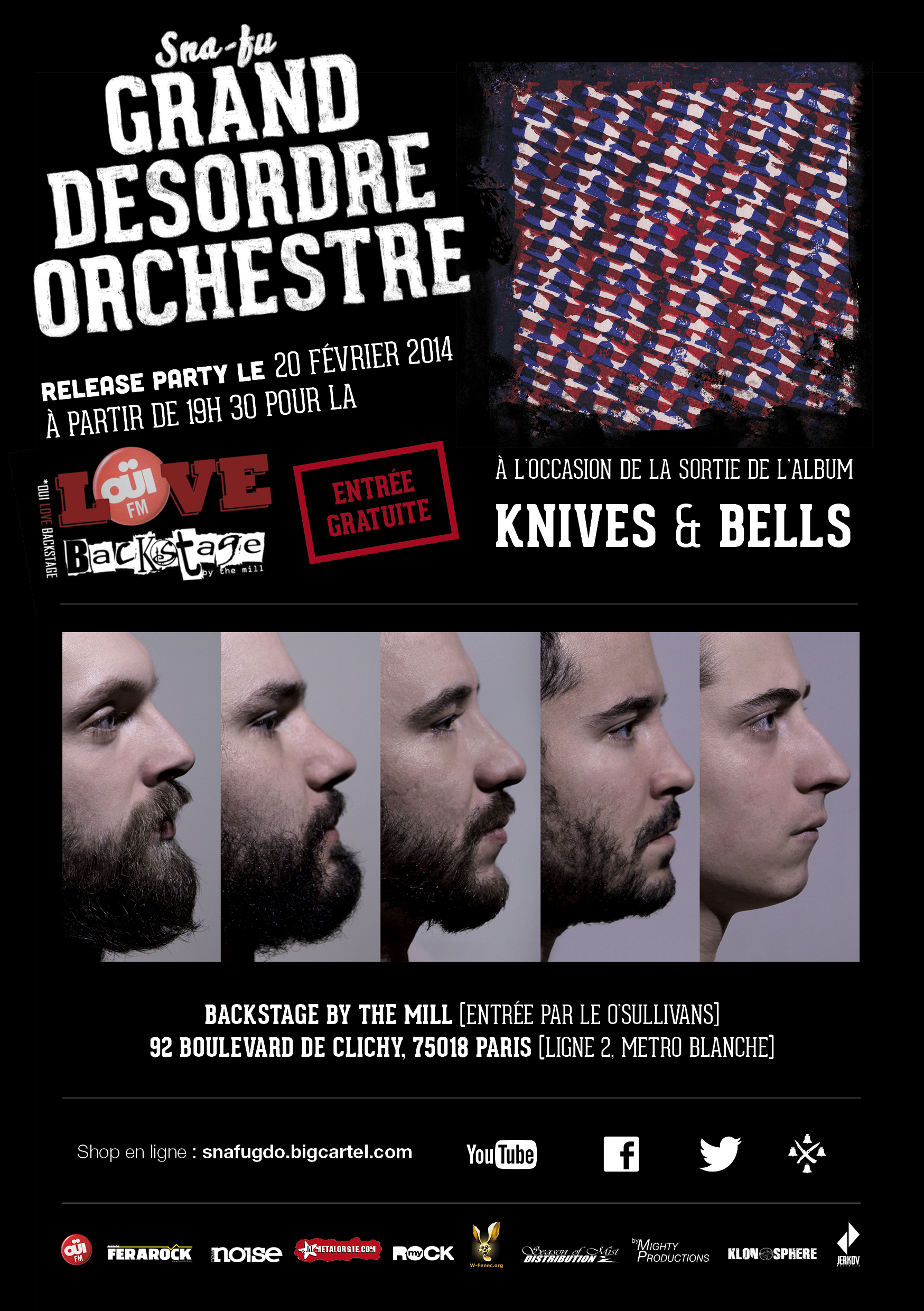 « Knives & Bells », le nouvel album des parisiens de Sna-Fu Grand Desordre Orchestre (rock sous influence At The Drive In/Refused), produit par Francis Caste (Kickback, Hangman’s Chair, Necroblaspheme, Cowards…), est sortit le 18 janvier chez Klonosphere.