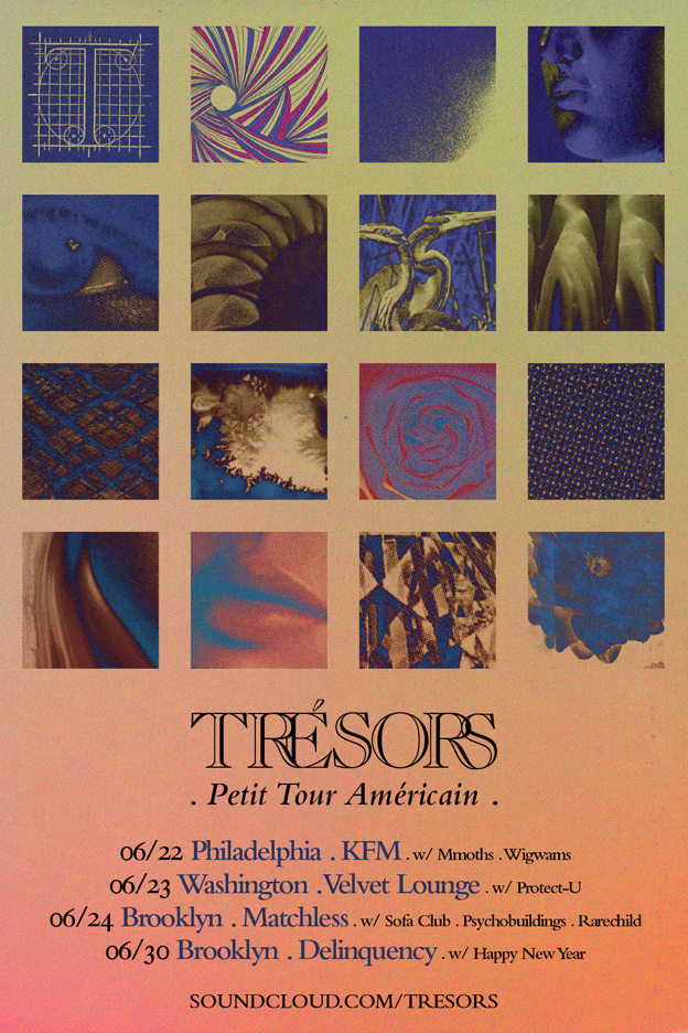 Un an après la sortie de son tout premier EP, « Visionnaires », Trésors part mi-juin à Baltimore mixer son nouveau mini-album avec Chester Gwazda (Future Islands, Dan Deacon). Six titres qui sortiront début octobre.